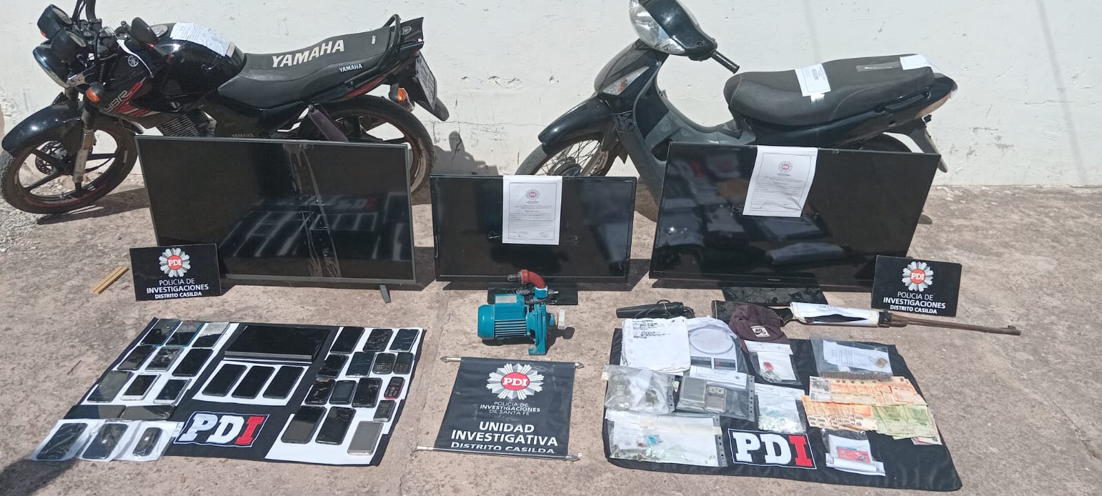 Para el diligenciamiento de la medida se contó con colaboración de personal de PDI de Distrito Villa Constitución, Las Rosas, Cañada de Gómez, grupos de irrupción de la URIV y URVI, y personal de AUOP de la URIV.
