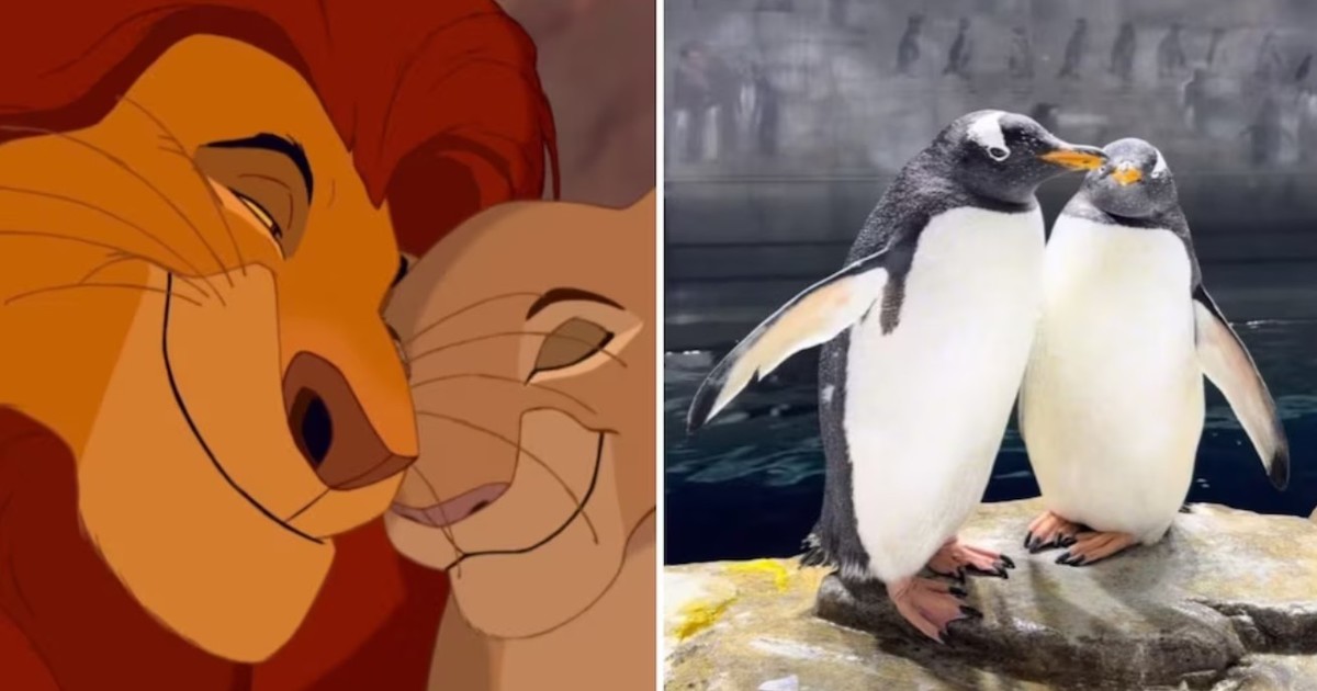 Un zoológico recreó la escena más famosa de "El rey león” para presentar a su nuevo pingüino bebé