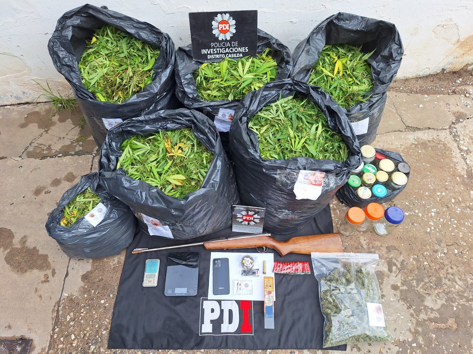 Además de todas las plantas, la PDI también secuestró un arma de fuego, municiones de diferentes calibres y otros elementos de interés para la investigación.