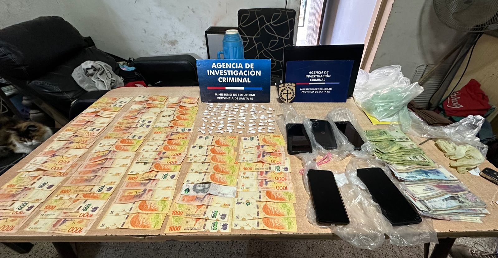 Personal de la Agencia de Investigación Criminal de Casilda realizó un allanamiento este sábado y pudo secuestrar una fuerte suma de dinero en efectivo y aprehendió a una mujer.
